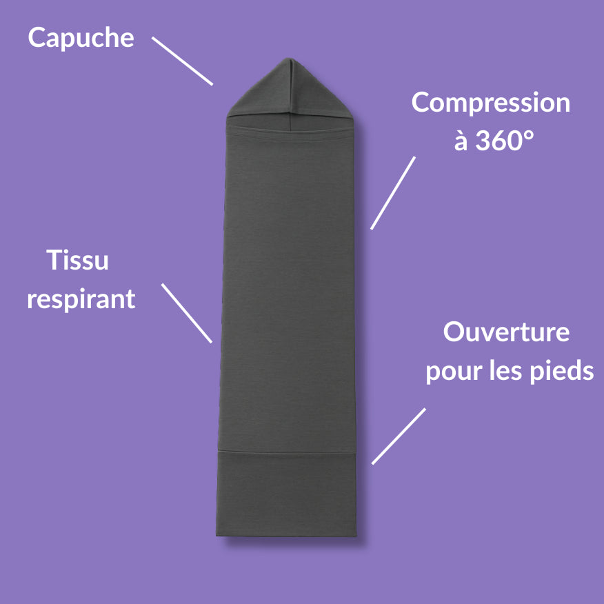 Snuggy est un cocon de sommeil, conçu pour offrir une compression douce et homogène, aidant à favoriser l’apaisement du système nerveux et à soutenir un sommeil plus profond et plus réparateur.